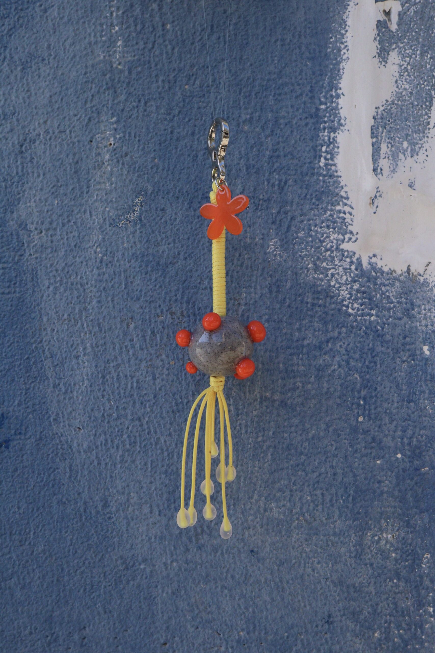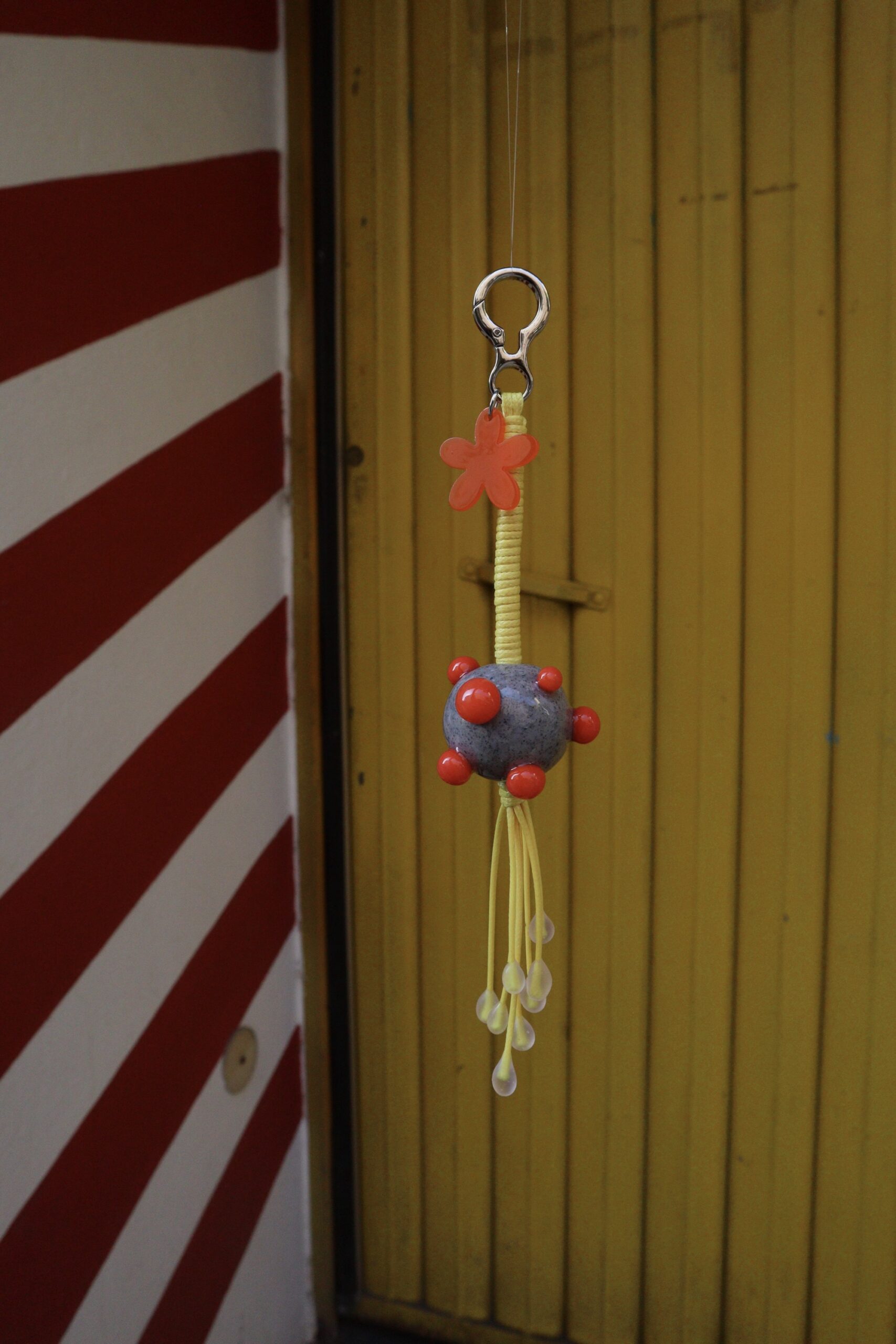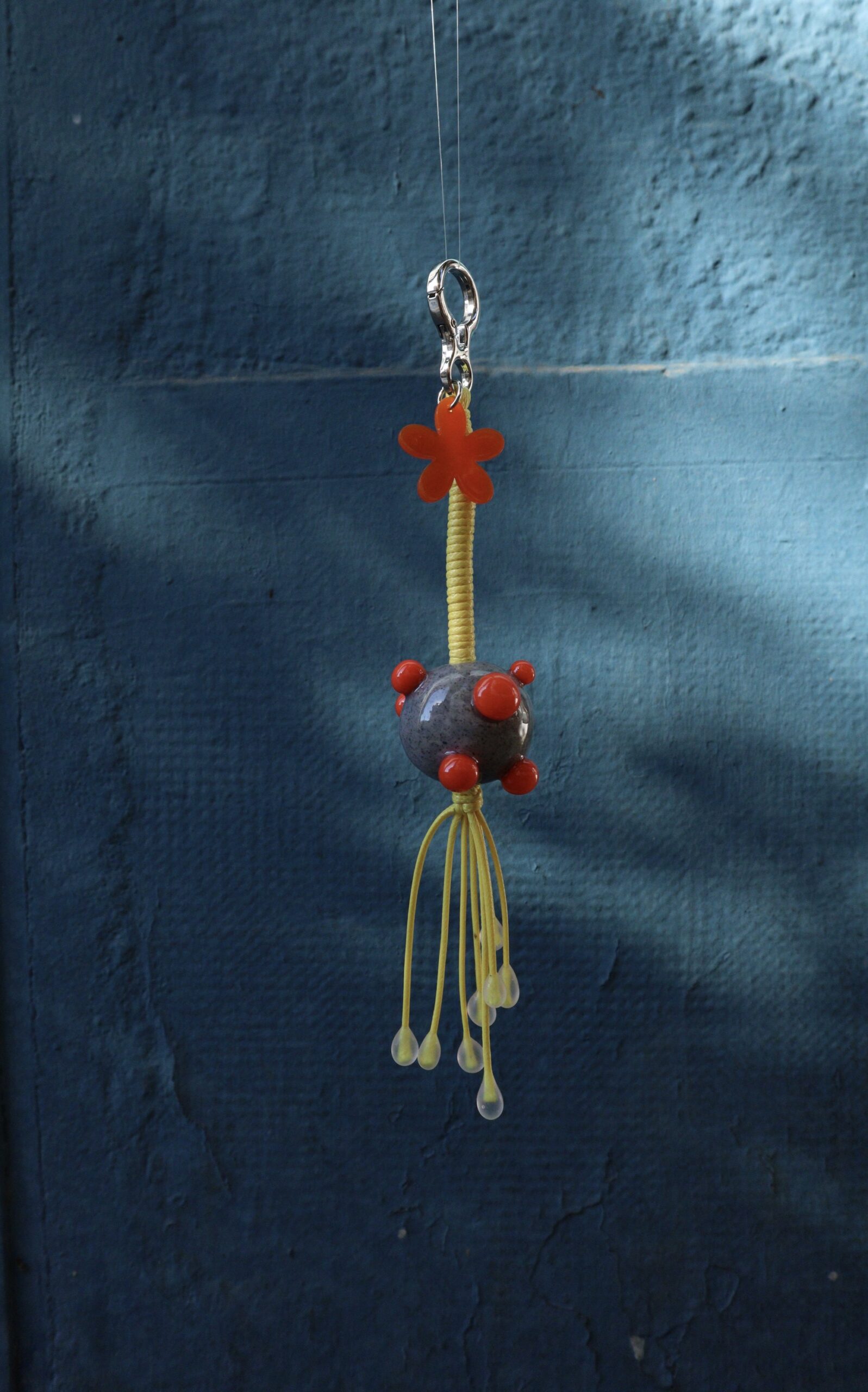 Полимерная глина, УФ гель, шнуры. Длина 16 см., диаметр карабина 2 см.